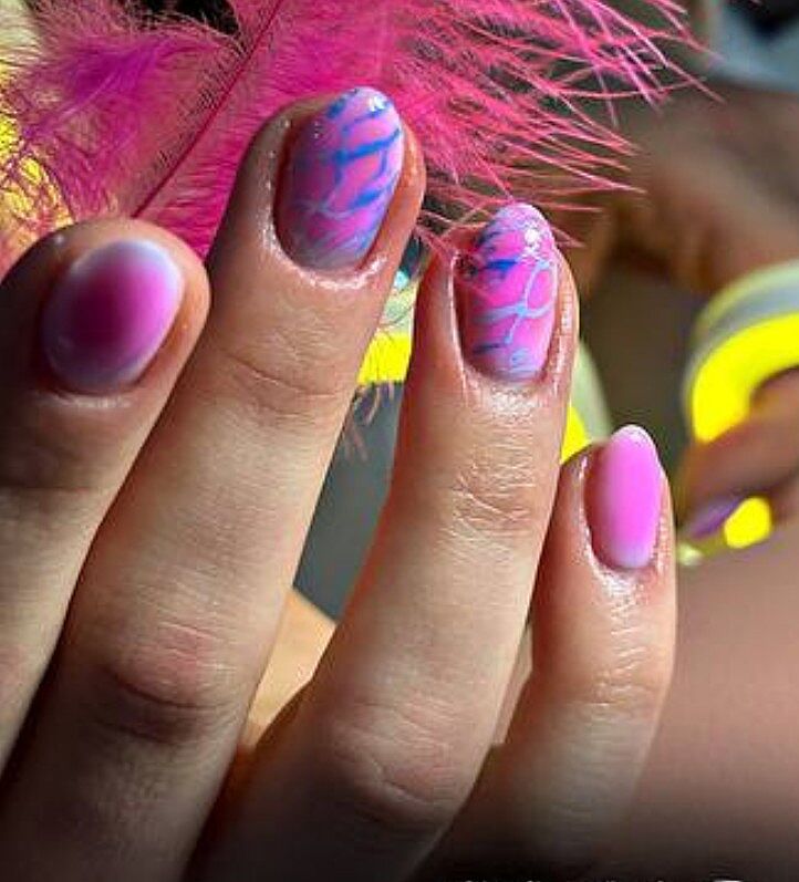 Сразу видно, девушка из села - это про дизайн , а сам маникюр - это еще большая жесть . Неаккуратно, гель не под кутикулу - жах