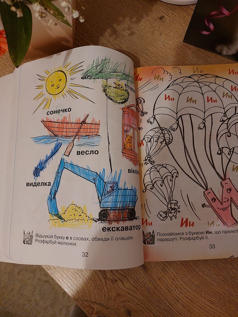 Деякі сторінки розмальовані/вирізані, а деякі зовсім чисті.