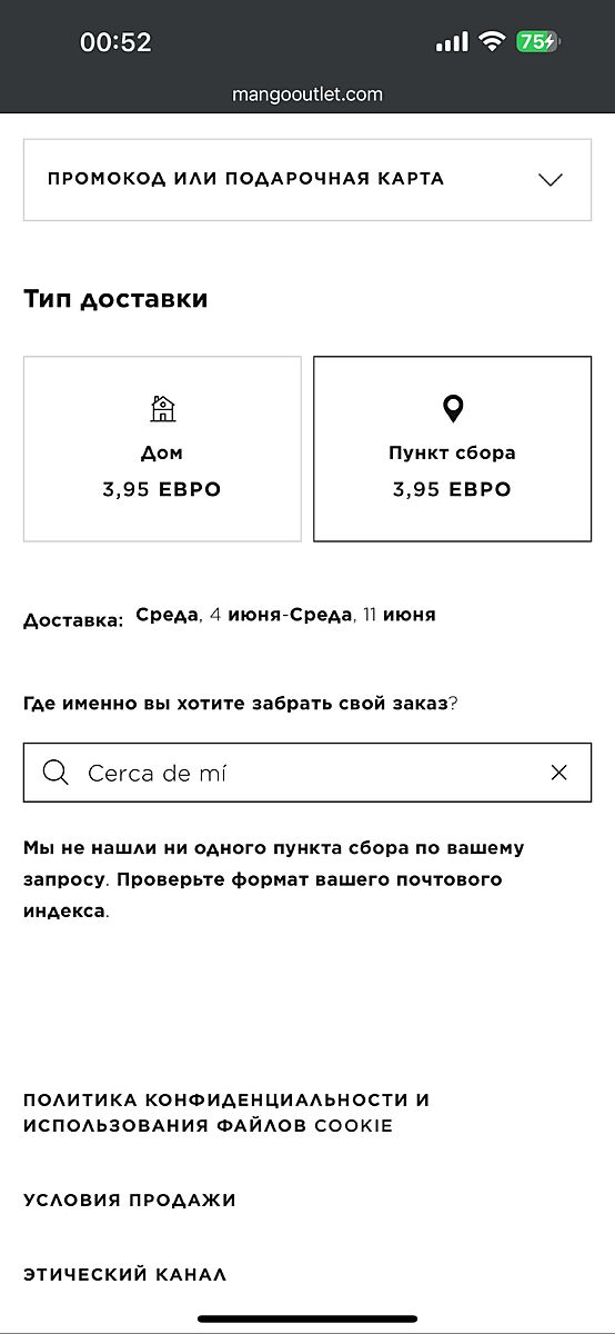 Перевела страницу , выбираю пункт выдачи , чтобы по индексу найти отделение . Ввожу индекс, что от мист в Испании , что от нпшопинг- выдает что не может найти . Почему ? Что делаю не правильно ?