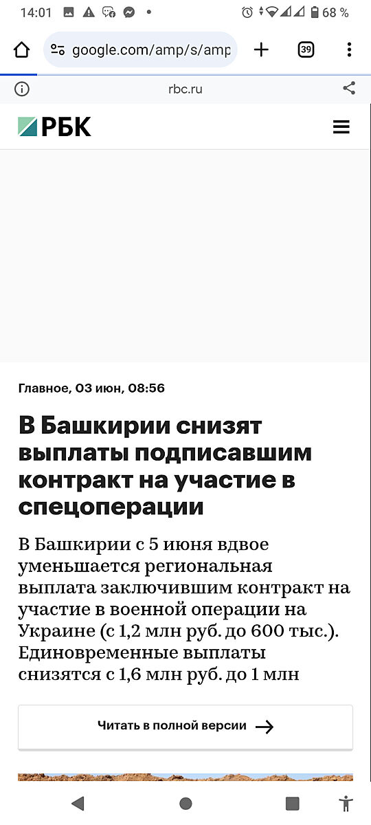 час назад В Башкортостане сократили единовременную выплату за заключение контракта для участия в войне против Украины. С 5 июня она будет составлять 1 млн рублей вместо нынешних 1,6 млн. Указ подписал глава республики Радий Хабиров. Региональную часть выплаты в Уфе урежут вдвое — с 1,2 млн до 600 тыс. рублей, однако там сохранится муниципальная надбавка в 700 тыс. рублей. Федеральная часть в размере 400 тыс. рублей действует бессрочно по всей России. Таким образом, подписавший контракт в Уфе получит 1,7 млн, а в остальных военкоматах региона — 1,4 млн.