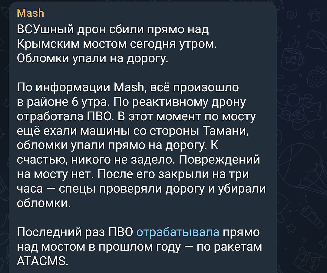 Це третє ураження мосту нашим СБУ, тому тут про Трійцю в цьому контексті