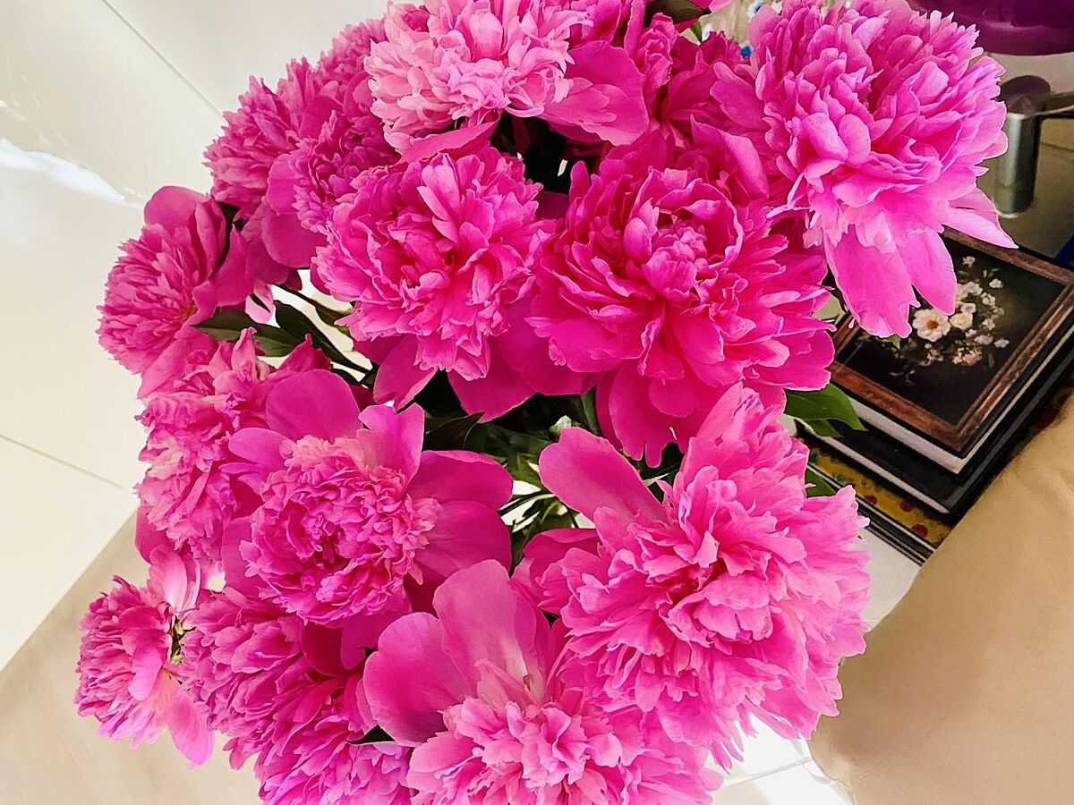 Вот пионы, мама купила мне и себе. У нее еще даже не распустились, а у меня уже половина завяла, а те что распускаются уже вялые. Делаю как она, меняла места в доме. Меняю воду, подрезаю. Обычные в горшках даже не завожу, они сразу грибнут. Цветы хвалю, к ним излучаю позитив