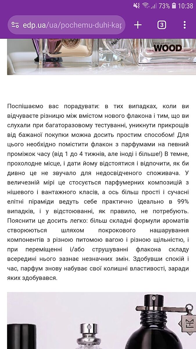 Коли мені приходять посилки з парфумами з іншої країни чи континенту, то до дупи, скільки вони до цього були на складі, бо їх пранспортували, були різкі зміни температури, їх трясли, і парфумам необхідно відстоятись і стабілізуватись.