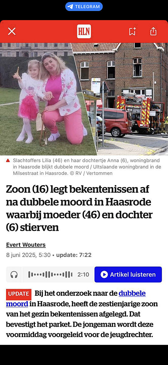 Вчера все новость видели об убийстве нашей беженки и её дочери в Бельгии? Что и было ясно почему-то сразу, что убил сын, а потом поджёг дом, и пошёл в школу.