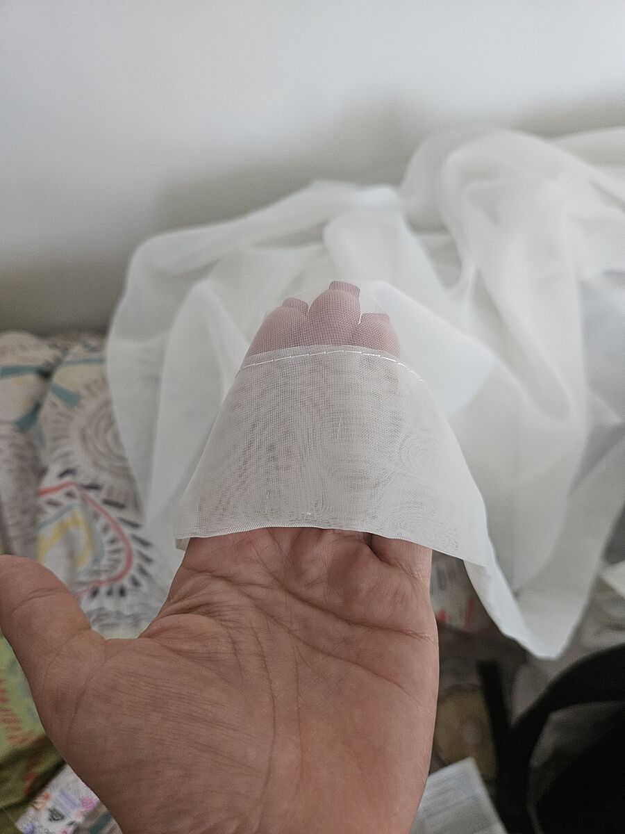 Внизу у тюли вшивают утяжелитель. Его можно отрезать, если он есть, и вшить в шов заново. Любую штору можно подшить снизу