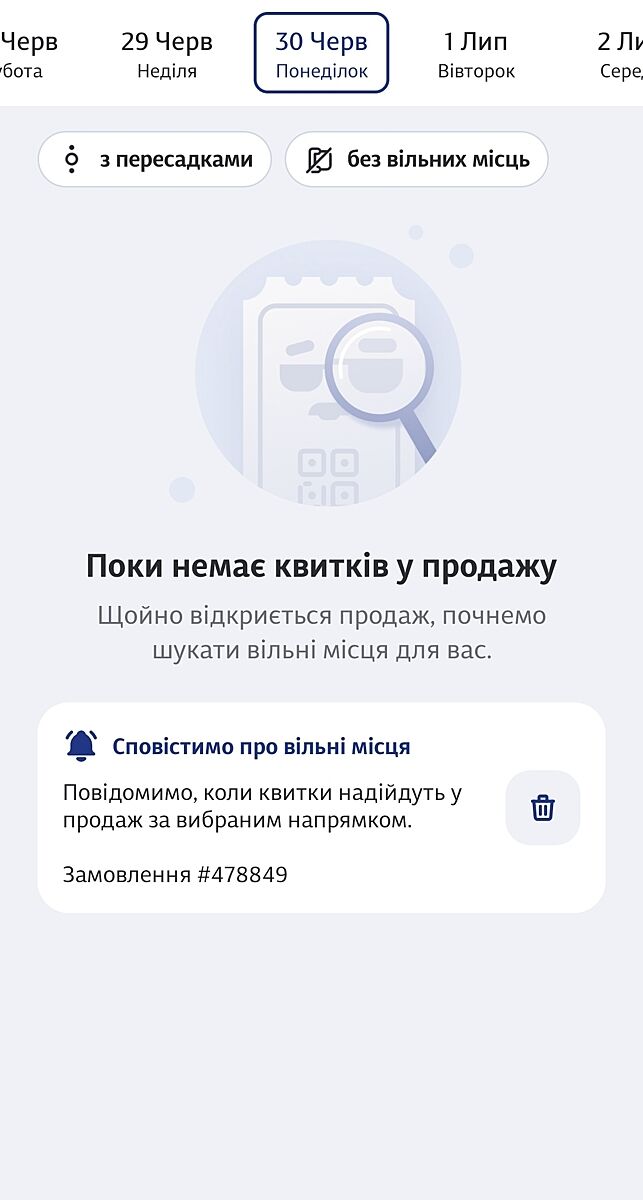 Подскажите, пожалуйста, как это сделать? Выбираю поезд и дату, там есть Отслеживать билеты, но по нему только оповещение и все. Что я не так делаю?