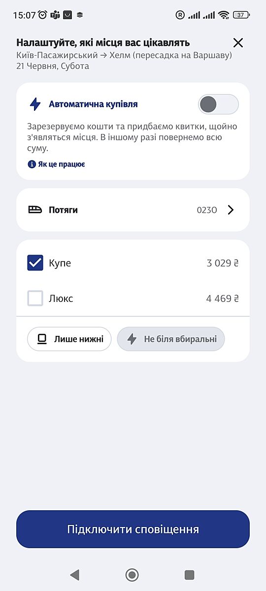 А вообще нажимаете отслеживание, потом выбираете какой поезд отслеживать, и тогда появится автовыкуп