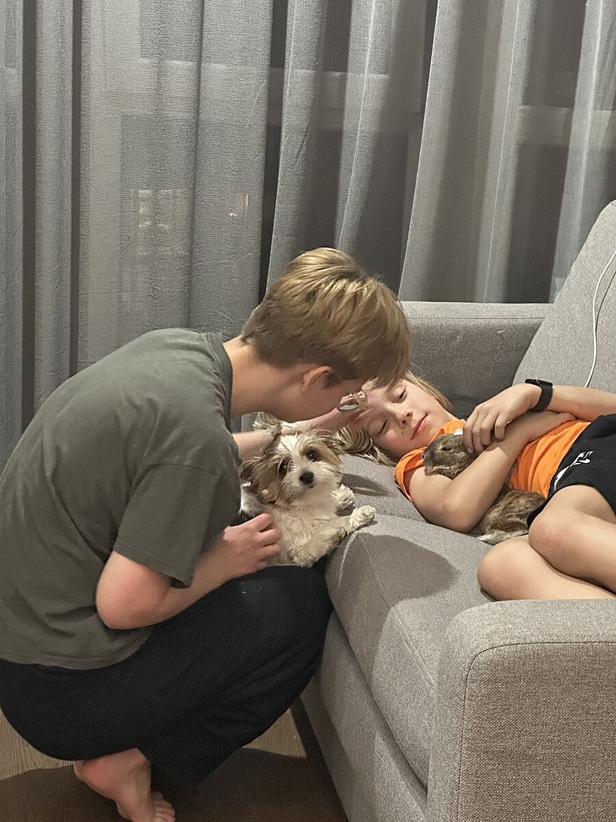 У нашому випадку, ще й сама більша подружка дітей, не зважаючи на її норовистий характер. Той-пудель, ми її узяли, коли ще ця порода була мало популярна, їй 8-й рік. Просто зараз так сталося, нажаль, що живе в основному не з нами, бо була спільна.