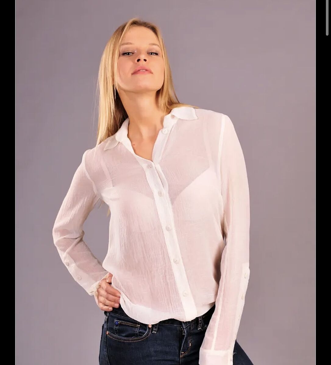 Просто сейчас поло в тренде и они плотные с воротничком. А ваше прозрачное не идет никак. Может под майку или топ плотный надевайте.