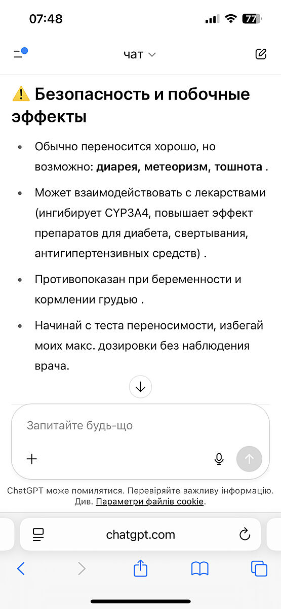 Я сейчас все время принимаю бады по советам гпт, тем более можно создавать промпты со ссылками на пабмед и прочее. Я кстати на нем быстро сбросила 2 кг (у мена небольшой вес), но бросила, так как я никак не научусь пить это все регулярно