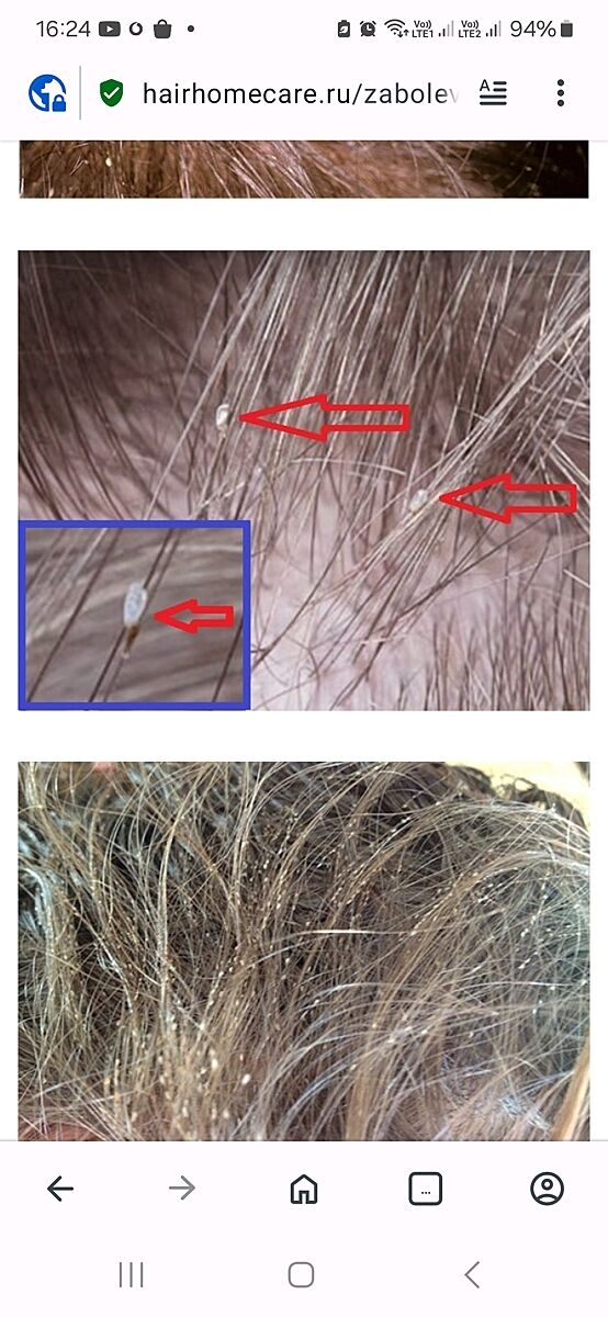 Есть ещё вид трубчатая перхоть. Она вокруг волоса обволакивается. Вечно с гнидами путают. У меня так в детстве было.