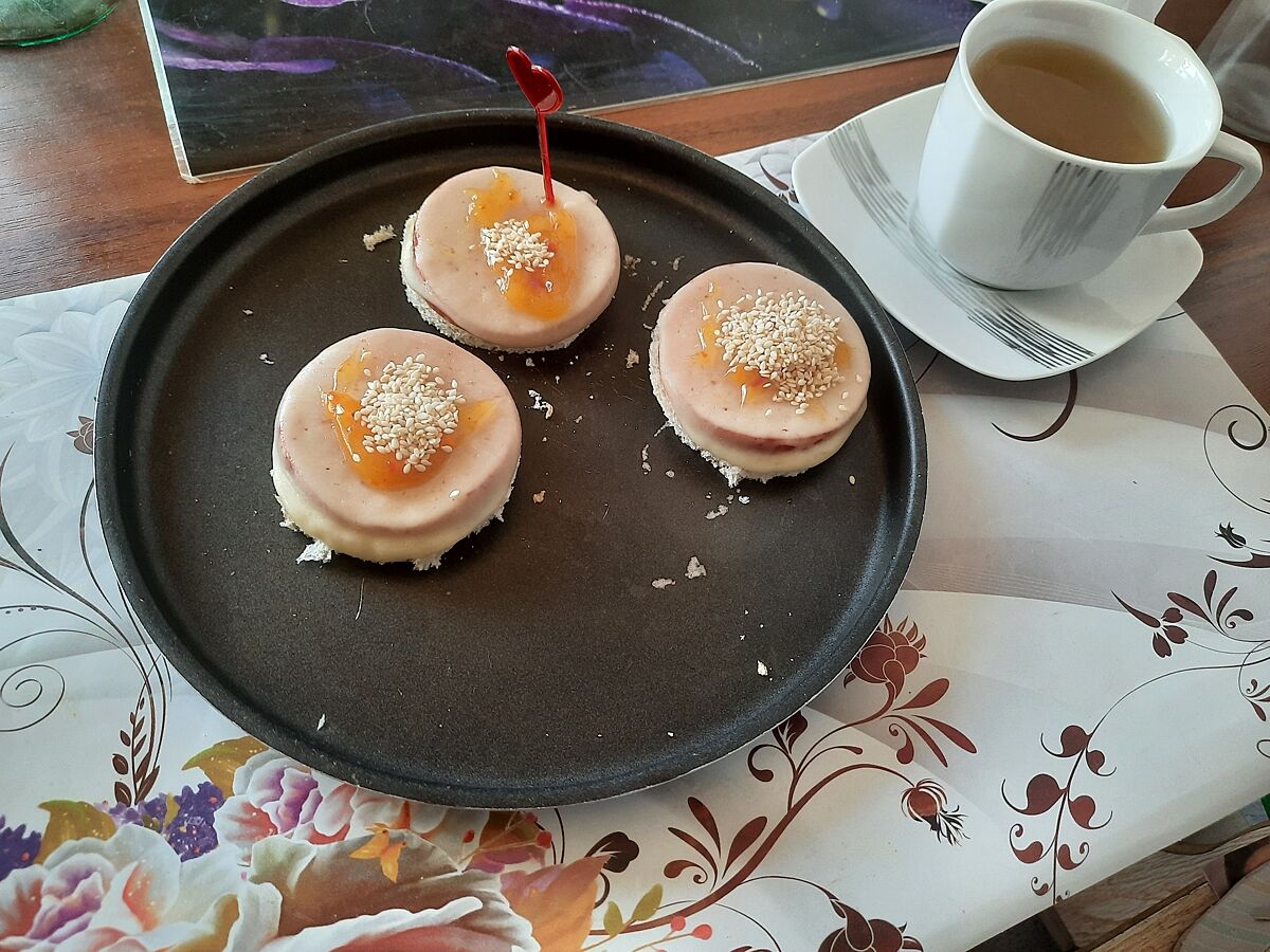 А у нас ничего модного, рабоче-крестьянские оладьи с вареньем из алычи)