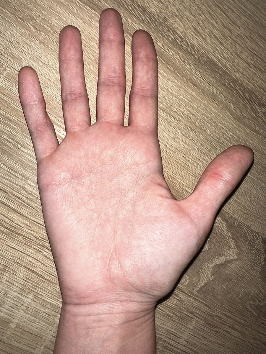Оце ви комок нервів! Купа малесеньких ліній - то ваші переживання, нерви, придумування, тривожність і так далі. А так у вас всі лініїї гарні, навіть лінія янгола-охоронця є. Тільки враження, що ви самі собі паскудите це життя(