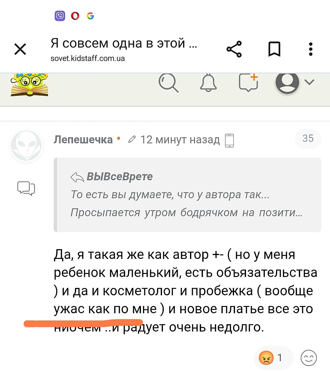 Да, я такая же как автор +- ( но у меня ребенок маленький, есть объязательства ) и да и косметолог и пробежка ( вообще ужас как по мне ) и новое платье все это ниочем ..и радует очень недолго.