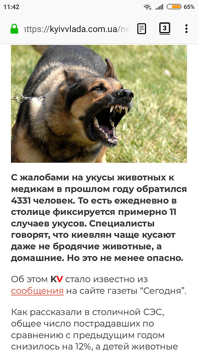 Ежегодно за медицинской помощью в больницы обращаются 100-108 тыс. человек, пострадавших от укусов животных, из них 26-28 тыс. получают курс специального лечения. Собаку, покусавшую киевлянку, убивать не советуют. «Животное, которое укусило, в любом случае не следует убивать.