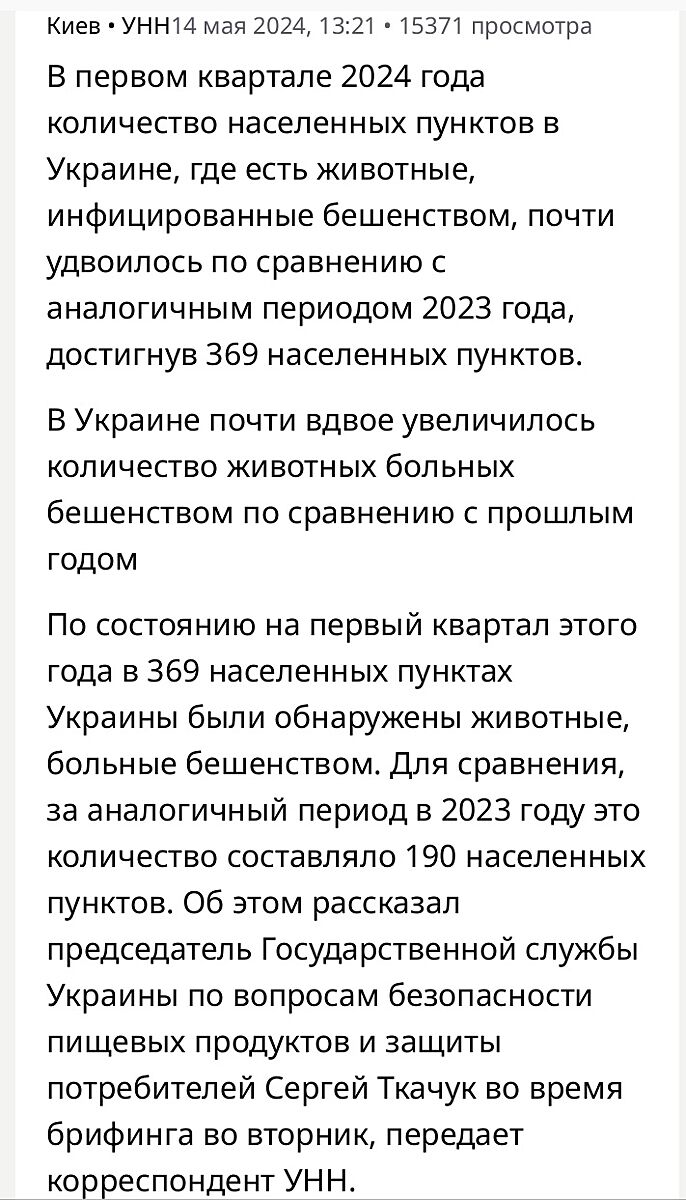 У животного, покусавшего киевлянку, диагностировано бешенство. Это - первый случай бешенства в Киеве за последние 20 лет. Хотя ежегодно в Украине регистрируется значительное количество случаев заболевания бешенством диких, сельскохозяйственных и домашних животных, Киев эта статистика до недавнего времени обходила.