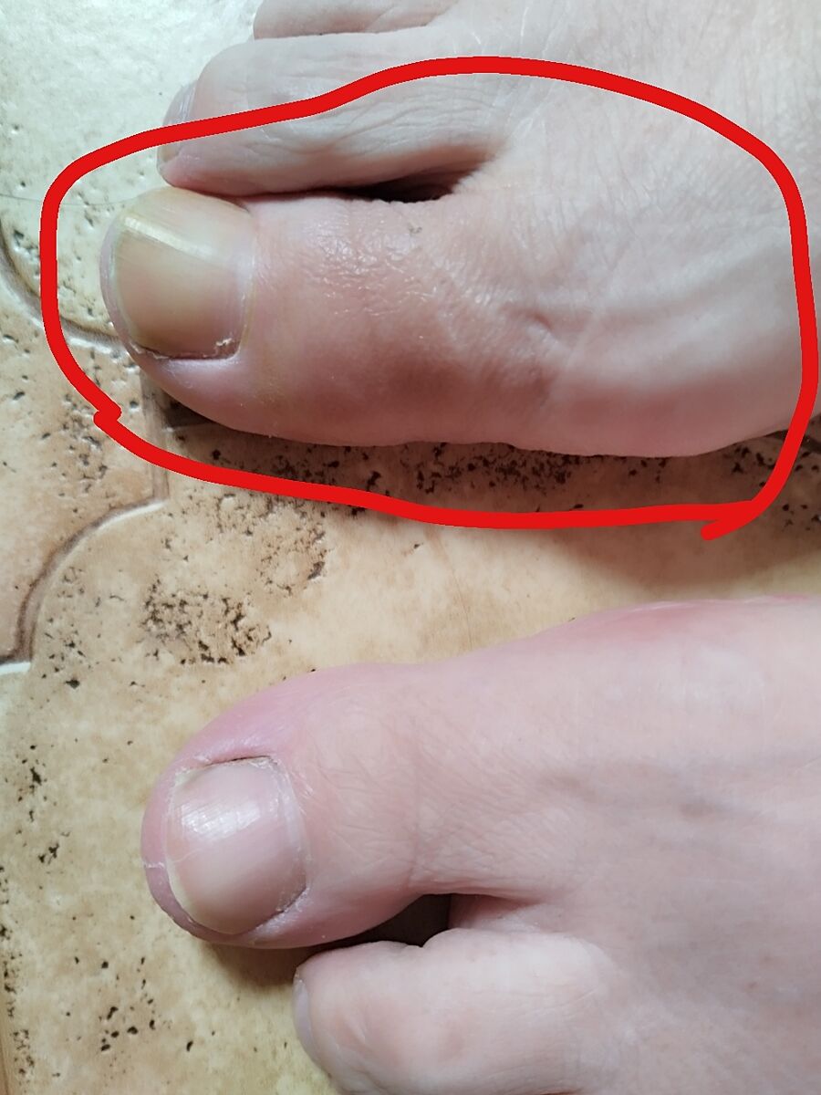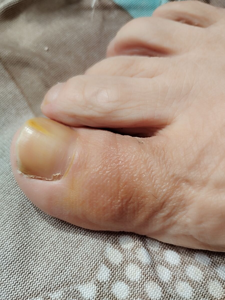 У меня был перелом большого пальца, гипс мне не накладывали. Палец был синий. У вас опасность, что есть диабет.