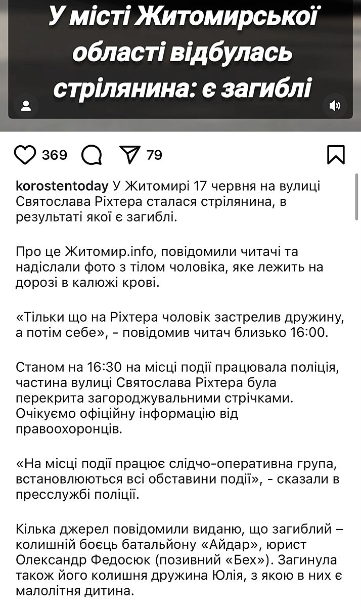 Дальше написано, что застрелил бывшую жену и себя