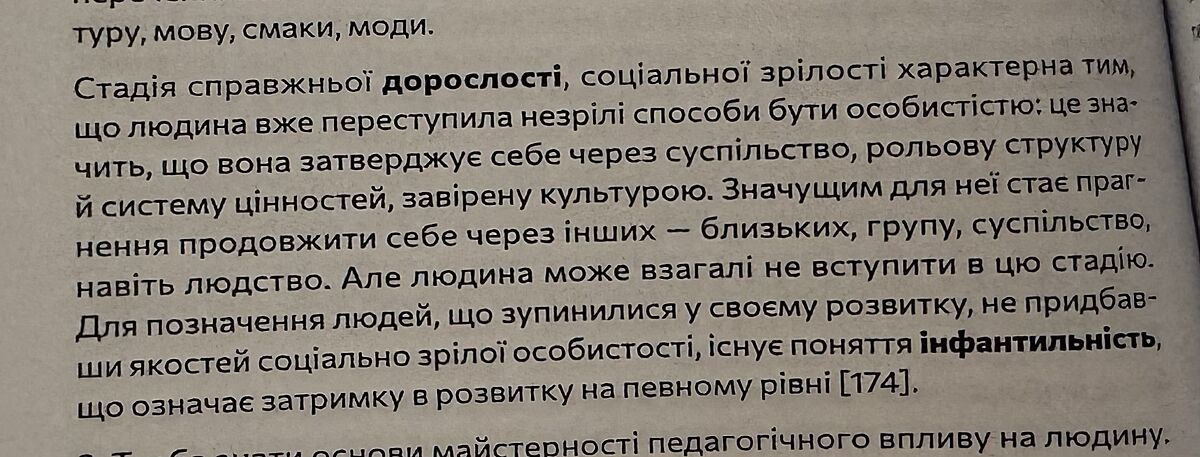 《Инфантильность часто проявляется в нежелании или неумении брать на себя ответственность. Инфантильные люди склонны перекладывать вину за свои неудачи на других или на обстоятельства, избегают принятия решений и обязательств, и испытывают трудности в управлении своими эмоциями.》