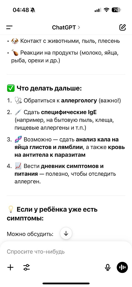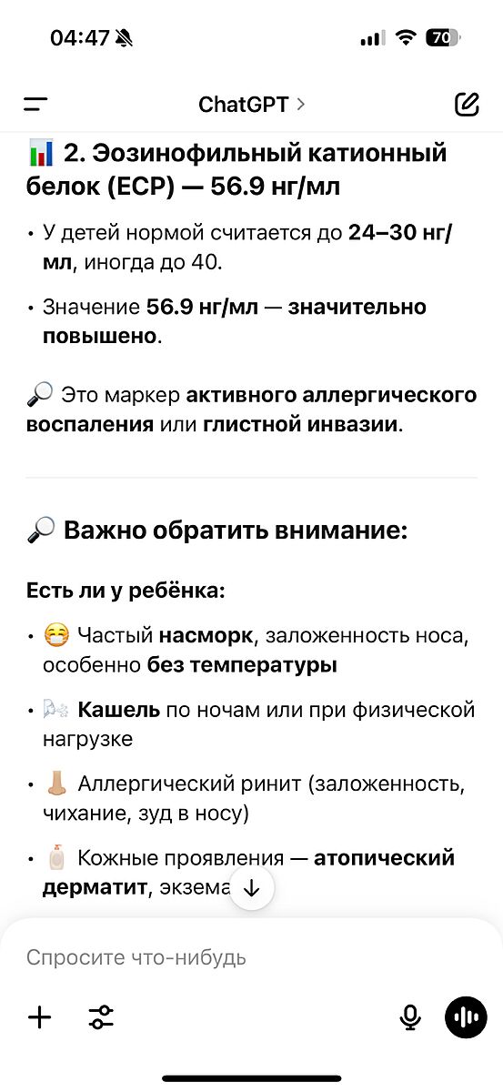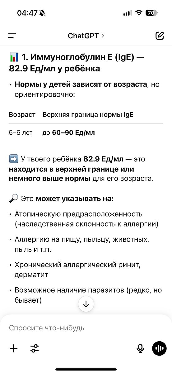 Усиление аллергического воспаления. Это бывает при сезонной аллергии, обострении атопического дерматита или контакте с аллергеном. Иммуноглобулин Е остался на том же уровне, так как он меняется медленнее и отражает общую склонность к аллергии, а не текущее обострение.