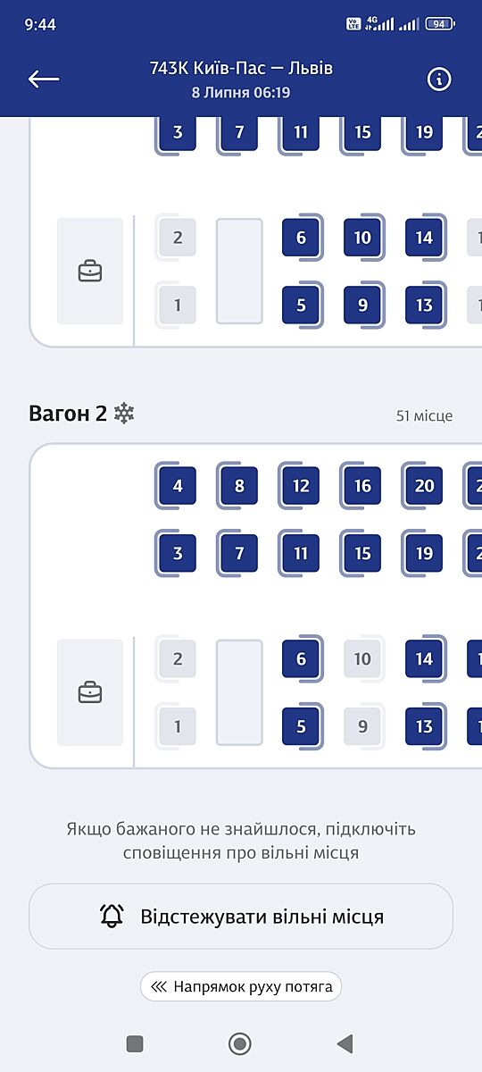 Можно ли как-то понять на сайте УЗ в какую сторону будет ехать вагон?