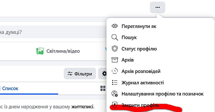 На головній сторінці вашого акаунту ( правий бік) є отака ф-ція ( три крапки), відкриваєте, клікаєте на ’закрити профіль’ , і миттєво ваша мрія здійснюється)) Все нуу дуже просто.