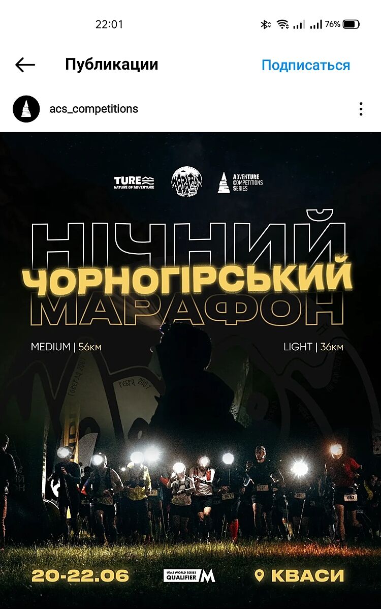 Мой сын в эту ночь бежит дистанцию 56 км по всем двухтысячникам Украины. Там крутой ночной забег организовали)