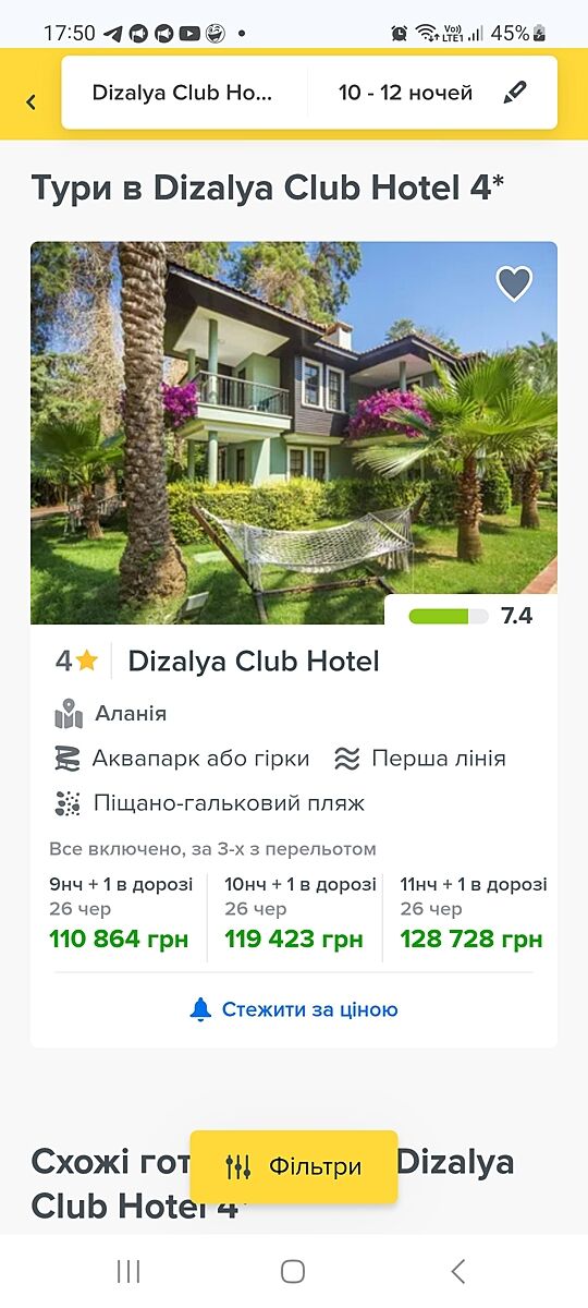 Готель Ivana Palace 4 зірки, але він більше для спокійного відпочинку, дискотек, гірок немає. Харчування сніданок і вечеря, все свіже, смачне, риба, мʼясо, овочі гриль кожного дня, кавуни, дині, ананаси. Без креветок і лобстерів, але нам повністю підходить. Містечко Сонячний Берег.