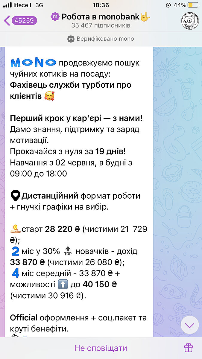 Почитайте в інтернеті відгуки про таку роботу, в монобанку в тому числі.