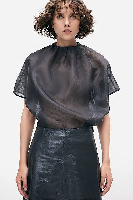 Та яке... В мене є блузка. Топ нижній з 100% бавовни, а органза - верх прозорий, 100% віскоза.