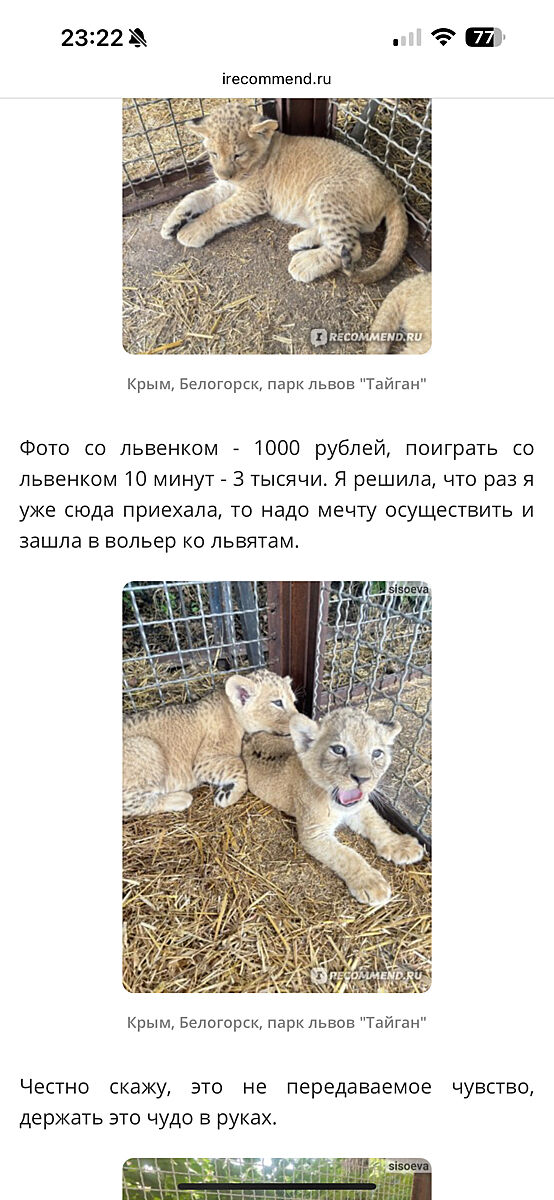 В смысле «было»? Вот из отзыва за прошлый год. Милота, да? Львенок, который должен днем спать, трудится в поте лица ради рашисток, готовых заплатить 1000 рублей и ненасытного владельца
