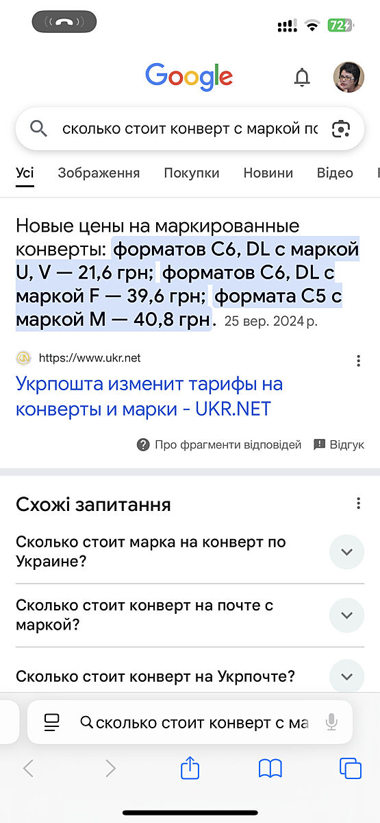 Да вчера бабушка причитала на почте, конверт и марка по Украине 21 грн