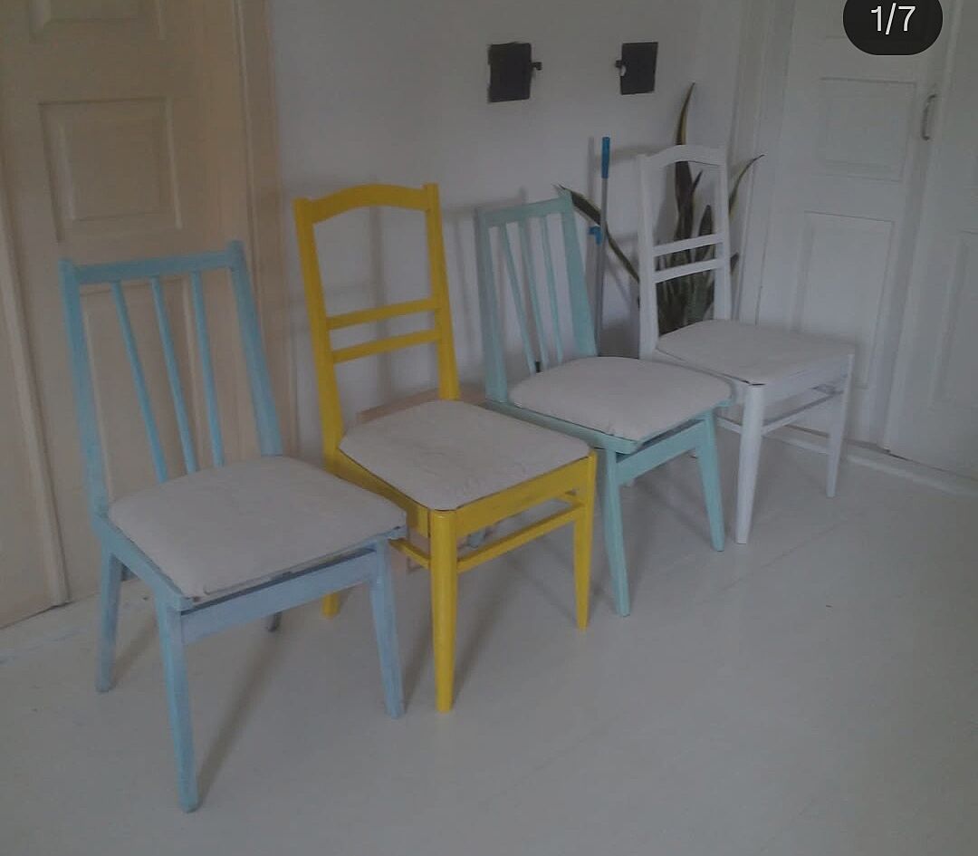 А реставрацию видела в объявлениях только сидушек, перетягивают заново, сами стулья не красят и лаком не покрывают
