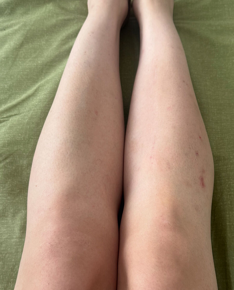А у вас росте на верхній частині ніг волосся? вище колін?