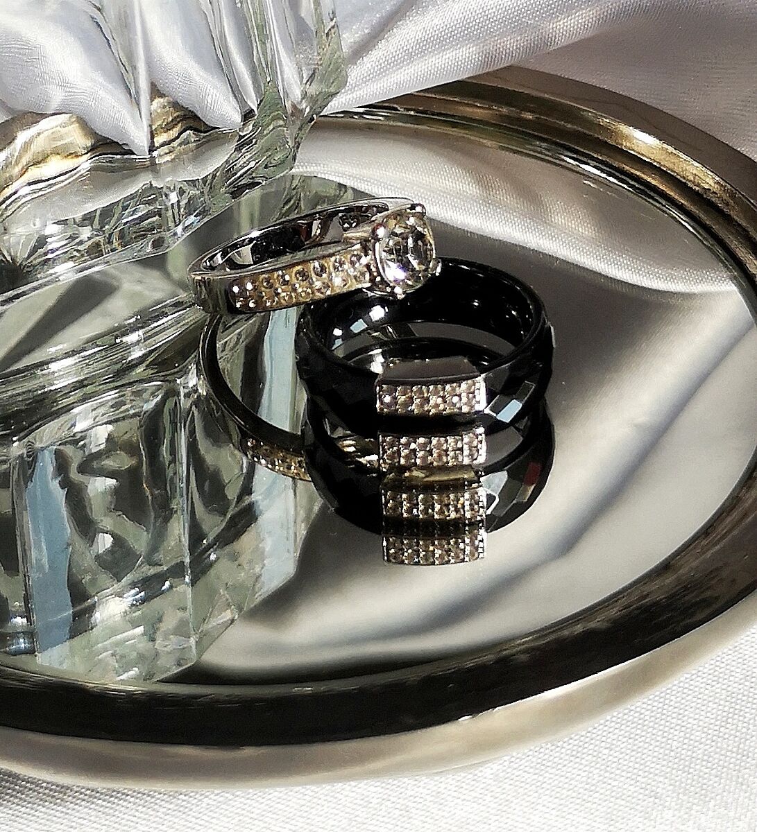 У меня чёрное с керамикой, не бриллианты. Нравится, но эта металлическая часть все время крутится, она не приколочена к кольцу