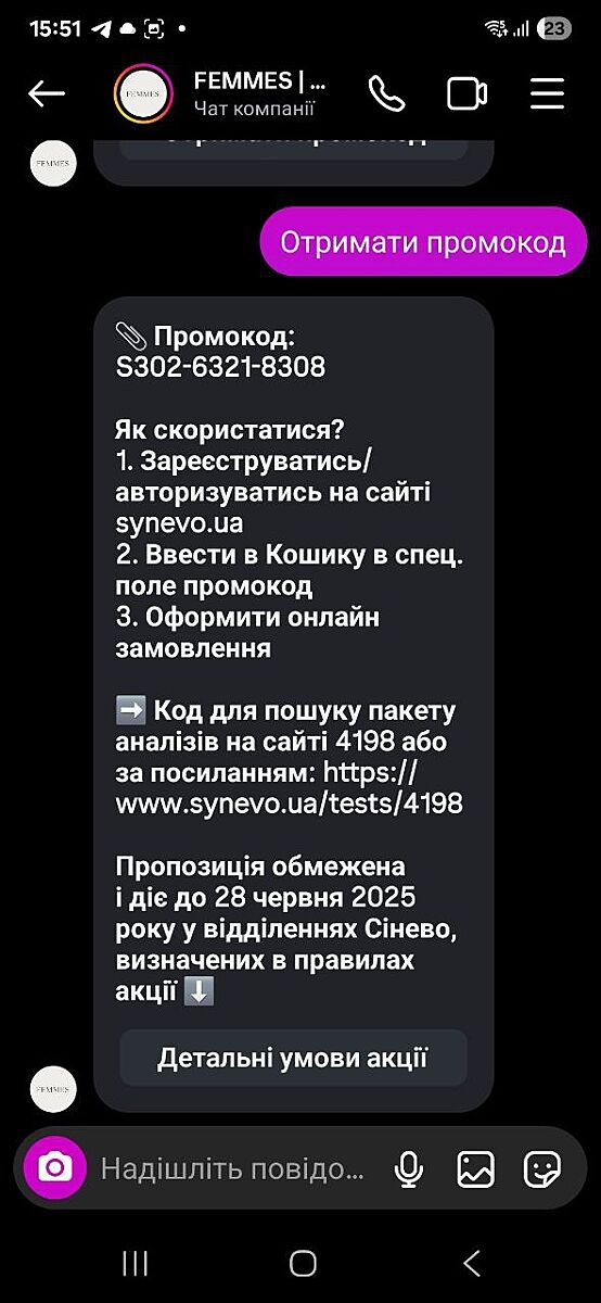 Делюсь промокодом на пакет анализов в Синево до 28 июня