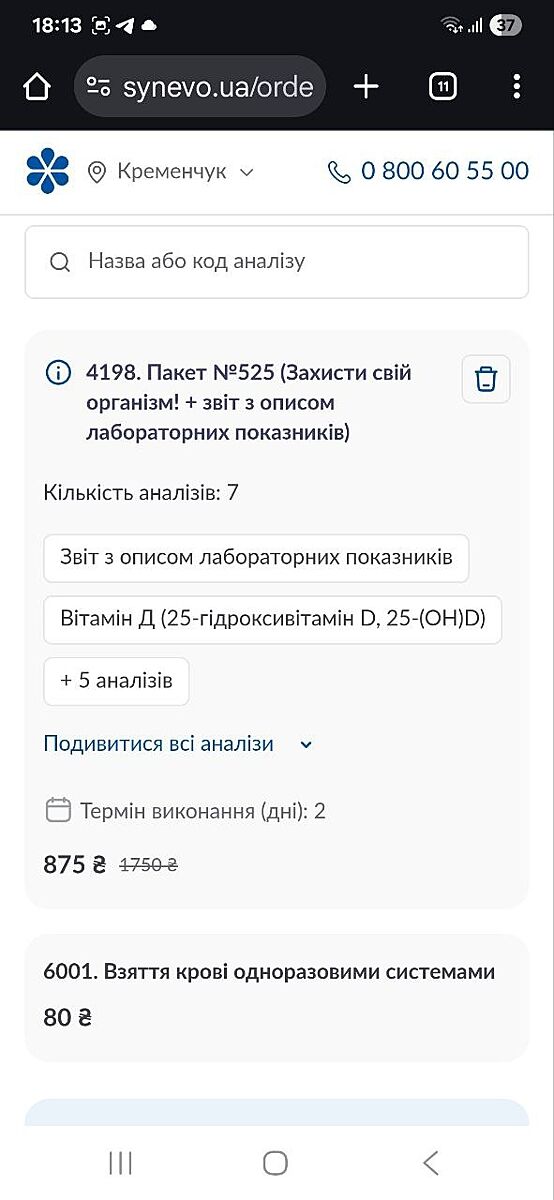 Пакет 525, включает шесть анализов. Скидка хорошая, может кому-то пригодится.