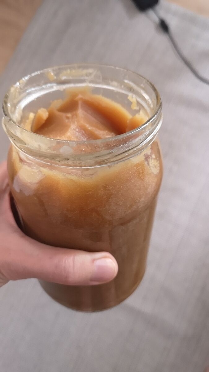 масло сливочное 100 грамм в неделю, олейна литр стоит у меня с зимы и еще ее не добила, сало может 100 грамм в неделю, авокадо редко - 1-2 раза в месяц, котлеты не жарю. я вот 2 дня ела уху из форели с овощами на обед и ужин и тоже был привет +500. так там вода, без масла, просто в воду кинула 2 картошки, 2 горсти заморозки из моркови, сельдерея и порея, 2 рыбки форельки. и то был привес. То 3 дня на ужин ела стейк и салат - привес. Каши макароны уже не помню когда варила. Могу сырники без сахара, 1 яйцо +2 ложки муки на 250 грамм творога + щепотка соли и на йогурте натуральном 3% - и после этого привес или вес стоит на месте. Сырники запекаю без масла в аэрогриле. Могу чай с сырником таким несладким + немного меда намазать что бы как десерт и пол ореха грецкого. тут глаза закатыыают что мед ем и орехи грецкие. Мне пачки орехов 180 грамм тоже на неделю хватает. А это мед я 2 недели ем, вот сколько наела, щас фото сделаю