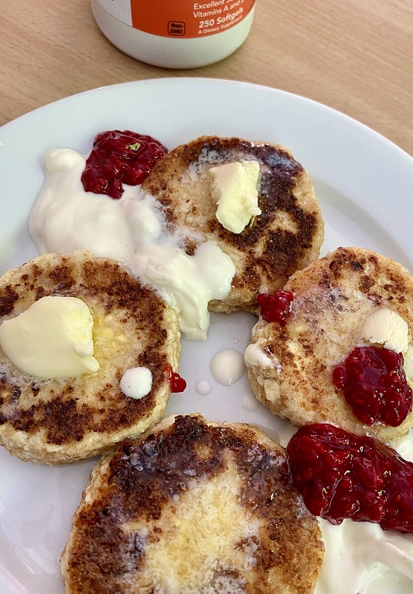 Сырники со сметаной, джемом и маслом
