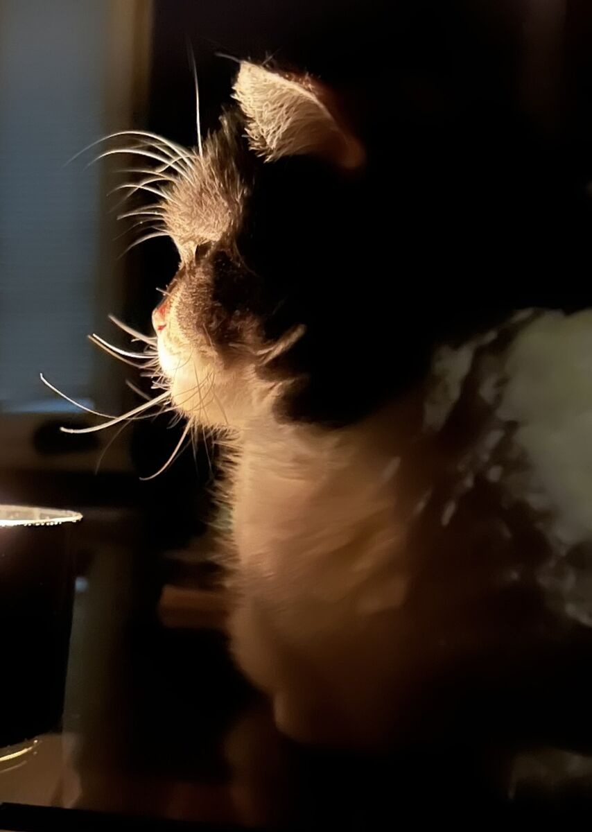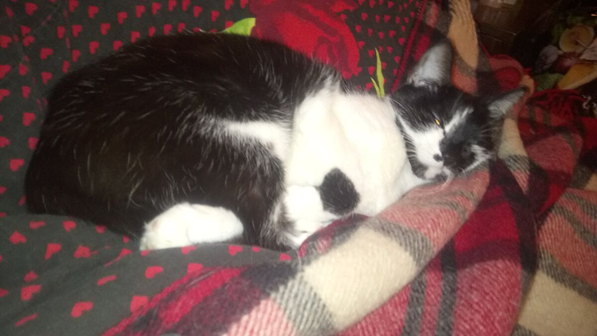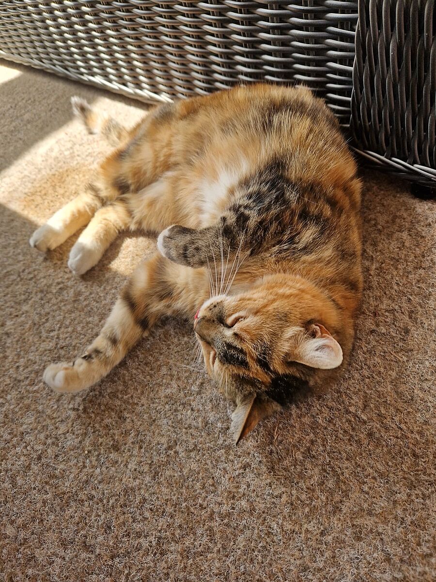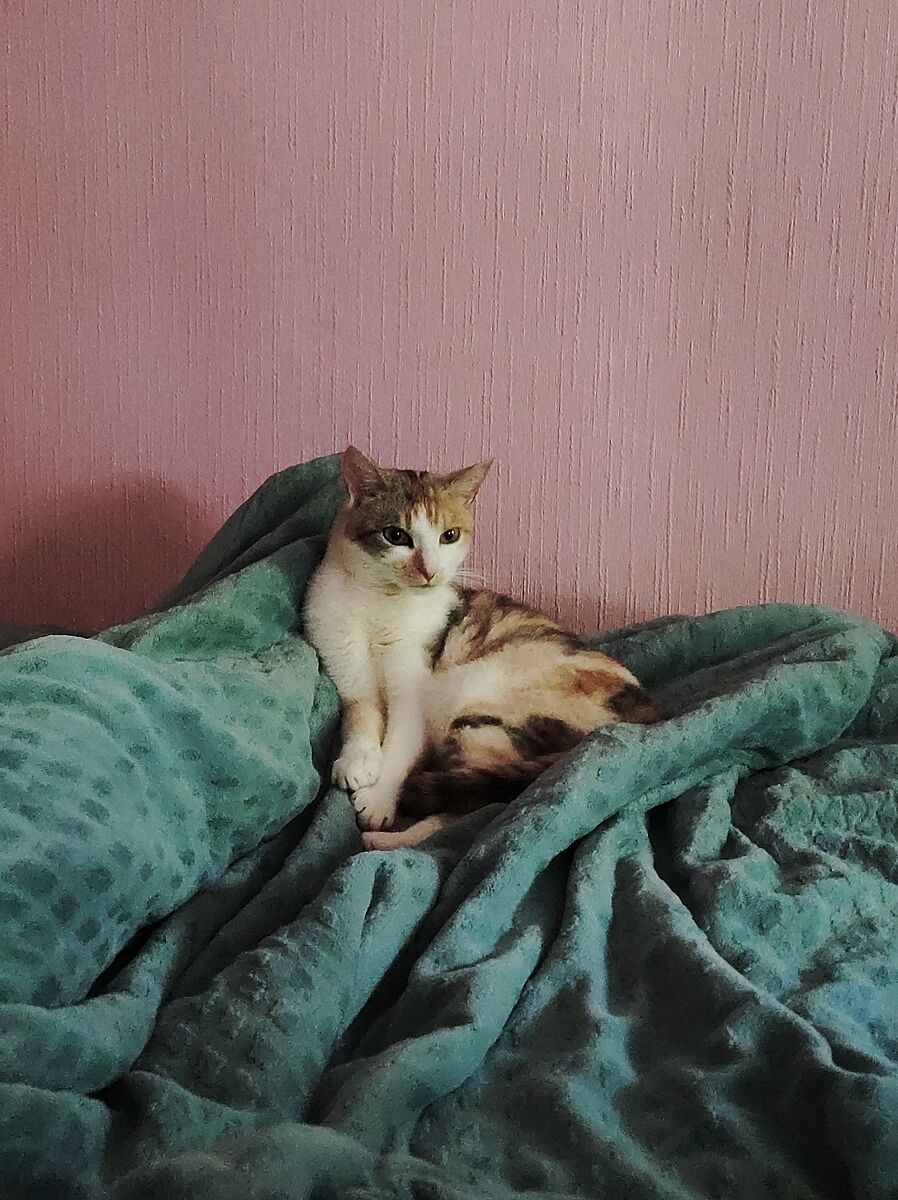 Найденыш, ее котенком взяли во время каникул и выкинули уезжая, по всей видимости. Что-то пищало в теплице, думали, что крыса завелась, оказалось тощее и несчастное маленькое существо. Откормили наглую морду
