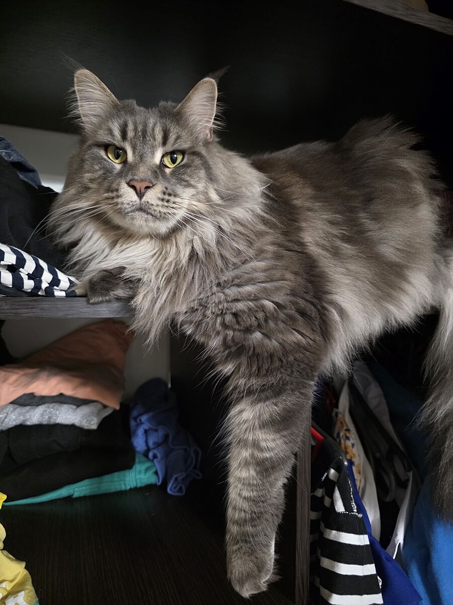 Вот, вчерашнее. В шкаф, если что ей строго-настрого нельзя. Но судя, по морде, ей очень важно моё мнение))