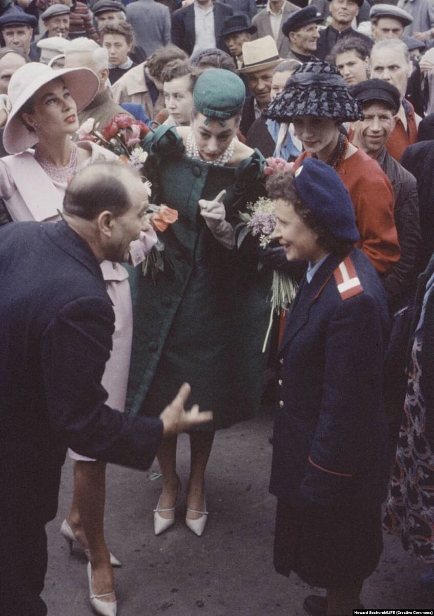 Француженки в изящных и стильных нарядах ходят вокруг советских бабищ. А те смотрят как на представление.
