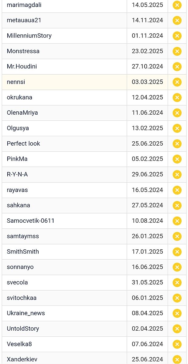 В мене -ніхто. Є заблоковані в лічці, щоб не засирали її придурки своїми висерами.