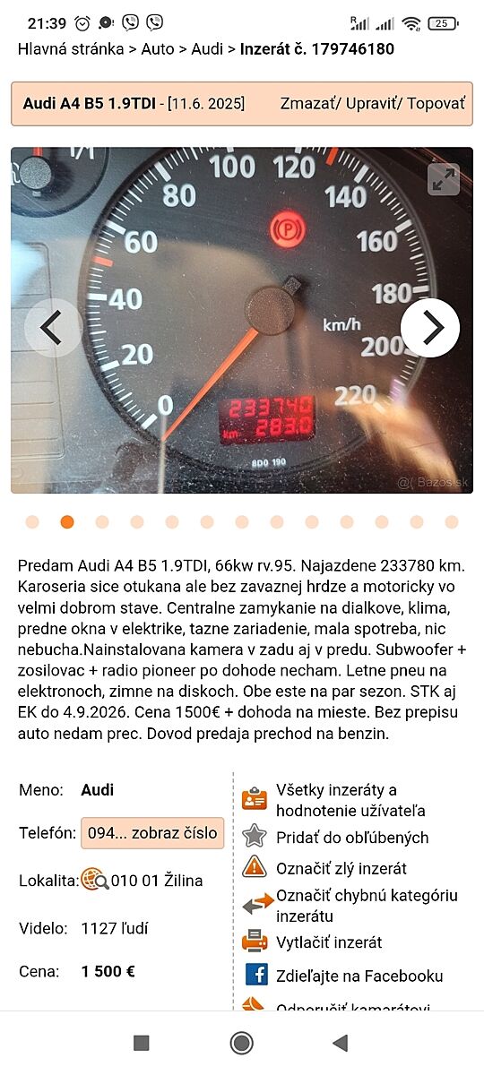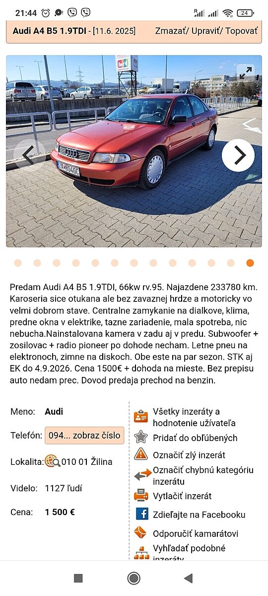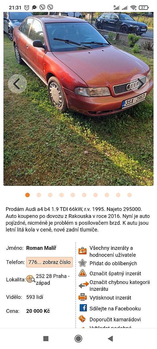 На фото Ауди 95 года, 295 тыс.проехала. Цена 800 евро.