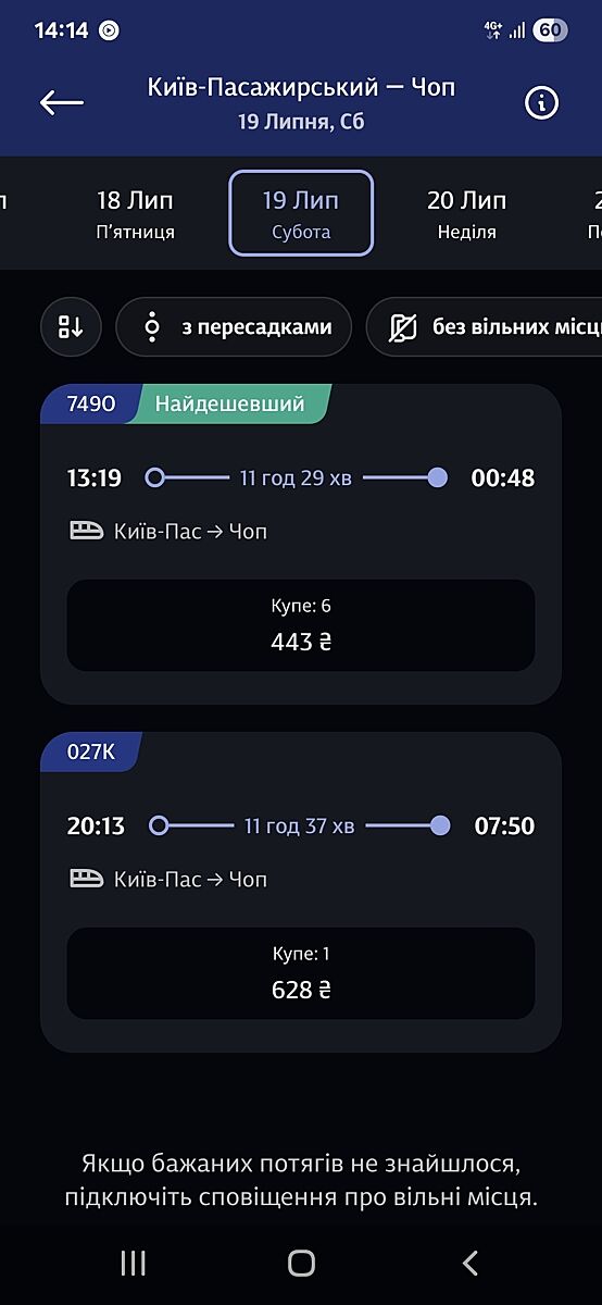 Нажаль не має...Цікавить 19 липня Київ-Воловець