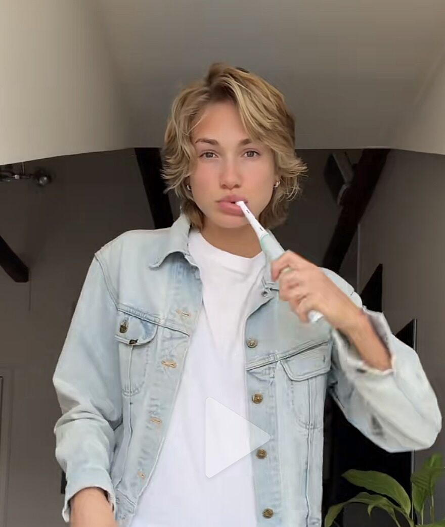 А прическа где? Что-то я не верю, что она сначала укладку сделала, а потом зубы чистить пошла.