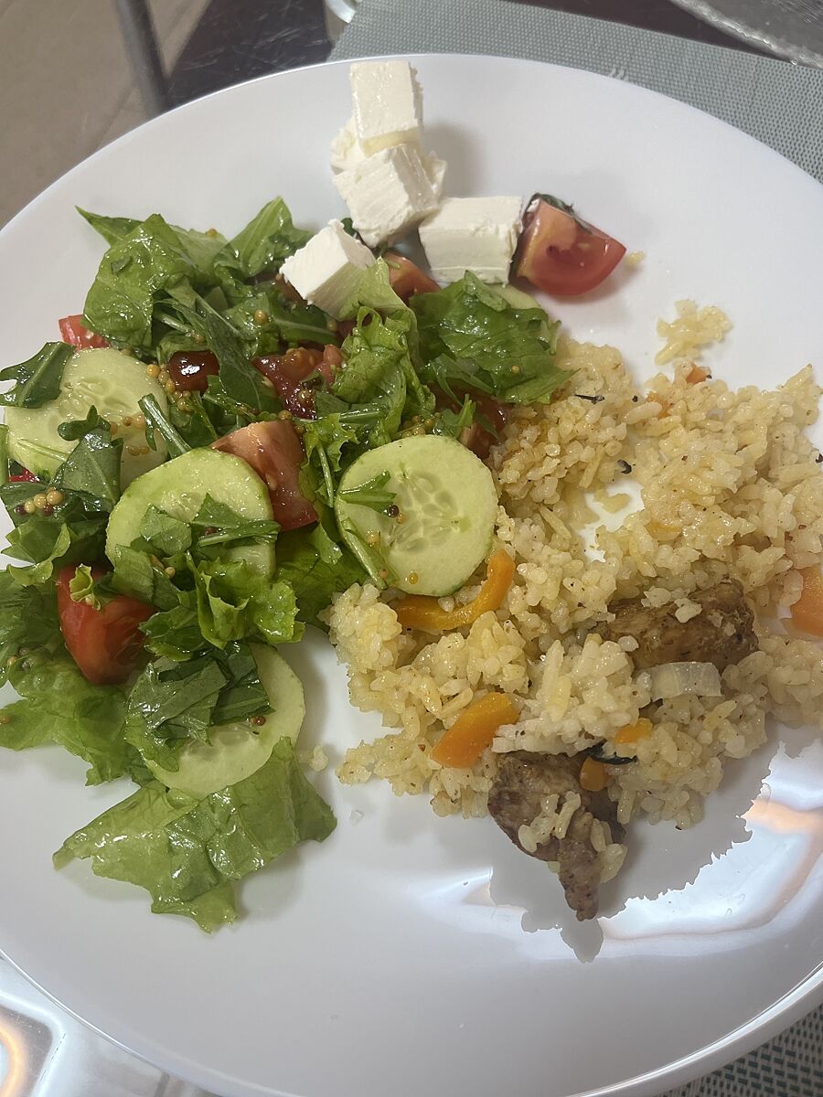 Щось немає апетиту, мабуть через жару. Зробила салат з помідор і болгарського перцю, і варене яйце.