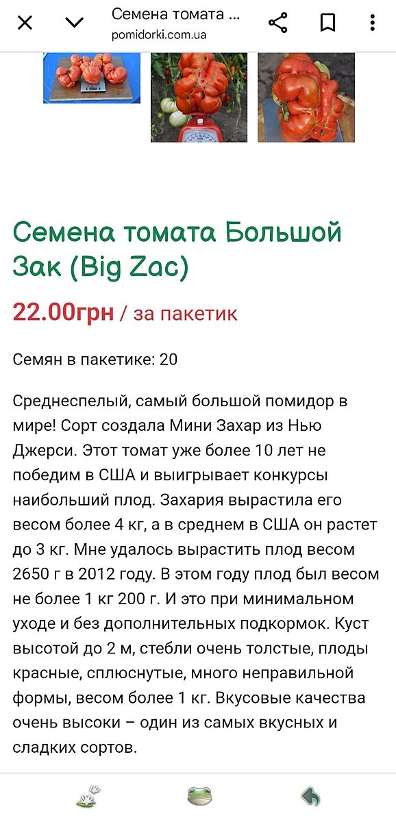 Поэтому и написала - первый попавшийся. Там миллион фото. У людей по 100-200-300 сортов. Вы не представляете эти масштабы. Вот сайт, где можно купить семена. И вес собственно одного помидора