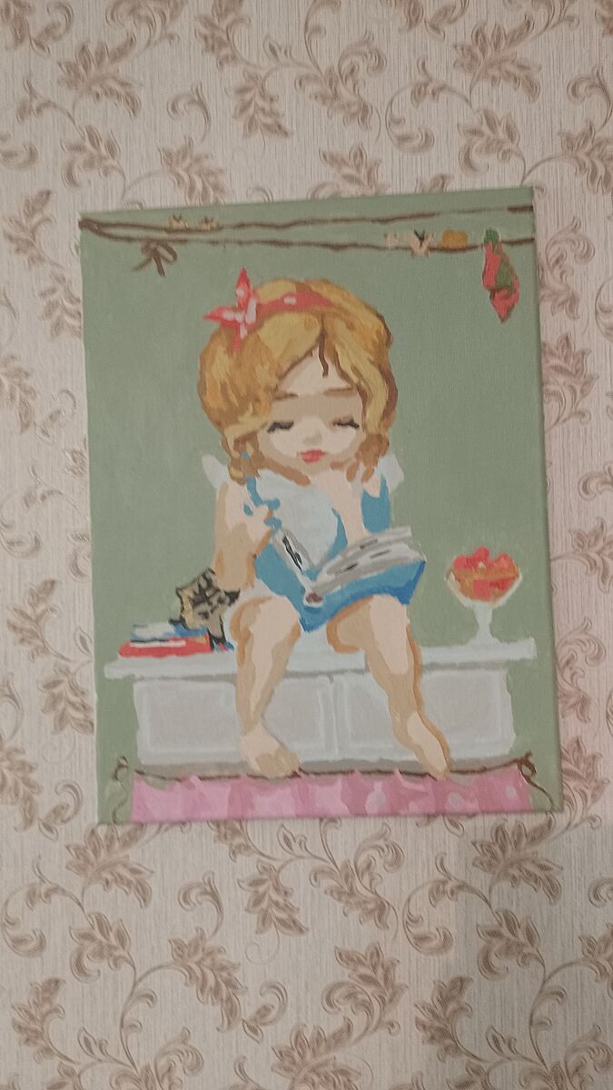 Пока в декрете, думаю как бы хоть немного облегчить мужу жизнь. Ничего такого я особо делать не умею, но в свободное время активно рисую картины по номерам.