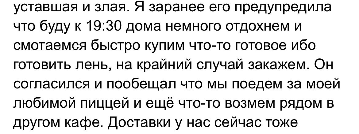 С мужчиной вместе почти год, сегодня был тяжелый день тревоги, и просто завал на работе, соответственно я не успела поесть и домой добиралась уже без задних ног, голодная уставшая и злая. Я заранее его предупредила что буду к 19:30 дома немного отдохнем и смотаемся быстро купим что-то готовое ибо готовить лень, на крайний случай закажем. Он согласился и пообещал что мы поедем за моей любимой пиццей и ещё что-то возмем рядом в другом кафе. Доставки у нас сейчас тоже закрываются рано, а машина только у него. В итоге когда я добралась домой пришла и заметила что его нет, начала звонить ему, а он оказывается успел отдохнуть и к другу в гараж поехал перебирать там машину + радостно сообщил мне что они себе за пиццей и пивком сгоняют если что!)). Я головой понимаю что это часа на 2-3 и никуда мы не поедем. Вот как думаете он это специально или ему просто пофиг на то что я голодная и уставшая и хочу от него просто минимальной заботы после трудного дня??? P/S Это не первый раз уже, и да когда-то уже обсуждала с ним эту тему и он ничего такого не видит, хотя знает что например сейчас мне бы на то же такси денег не хватило, а ему потом пару часов фиг дозвонишся чтоб докинул...